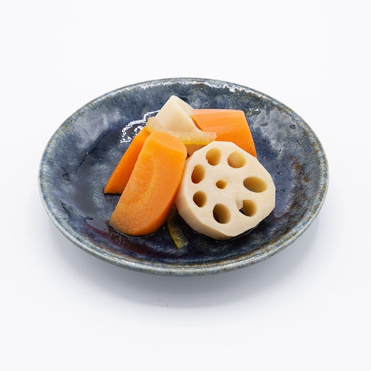 白くやわらかな肉質、粘りとシャキシャキした歯触りを併せ持つ岩国レンコンと、旨みたっぷりの人参を絶妙なバランスで漬け込みました。シャキシャキとした歯ごたえと、ほんのりとした甘みが特長で、おつまみやサラダのトッピングとしても最適です。